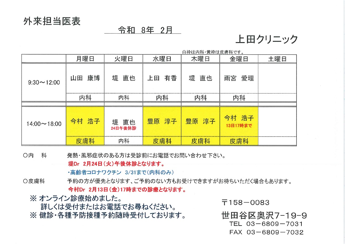 ○外来担当医表(令和8年2月)・2月 休診日のお知らせ