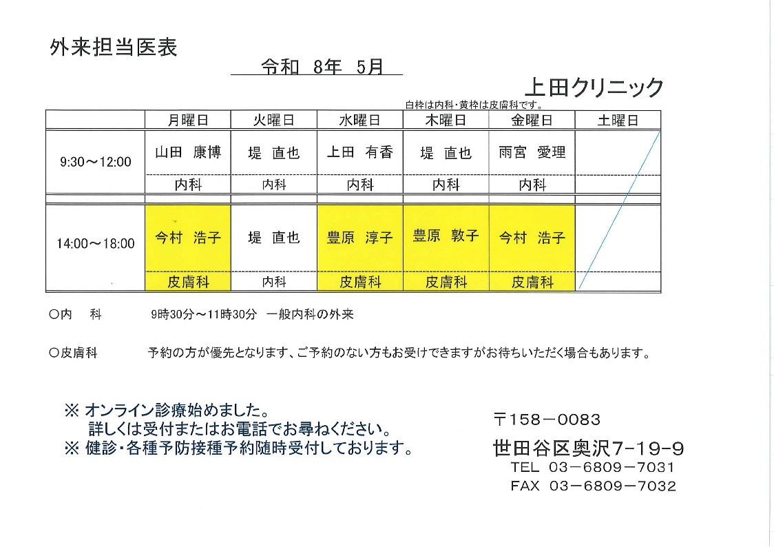 詳しくは上田クリニック(外来診療部門)HPをご覧ください。